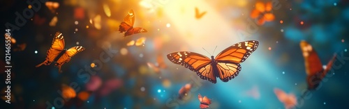 Obraz premium Butterflies Soaring Through Light Rays