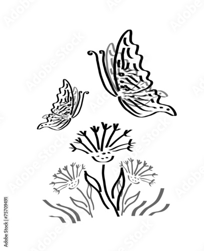 Fototapeta premium Butterflies with flowers