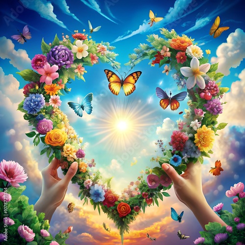 © Umyia, Obraz premium butterfly and flowers