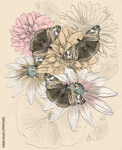 Fototapeta premium butterfly and flowers