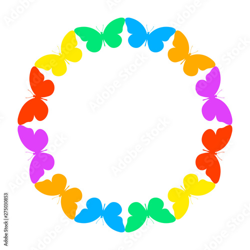 © metelsky25, Fototapeta premium Butterfly circle frame. Colorful butterflies border. Vector illustration.