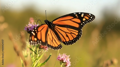 © Bilal, Fototapeta premium Butterfly climbs on a wildflower