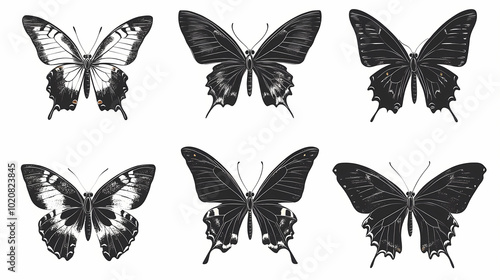 Fototapeta premium Butterfly collection,Butterfly Vector Silhouettes. Decorative Insect Collection.