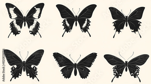 Fototapeta premium Butterfly collection,Butterfly Vector Silhouettes. Decorative Insect Collection.