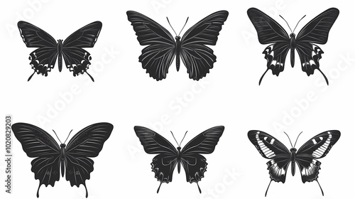 Fototapeta premium Butterfly collection,Butterfly Vector Silhouettes. Decorative Insect Collection.