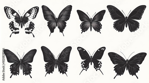 Fototapeta premium Butterfly collection,Butterfly Vector Silhouettes. Decorative Insect Collection.