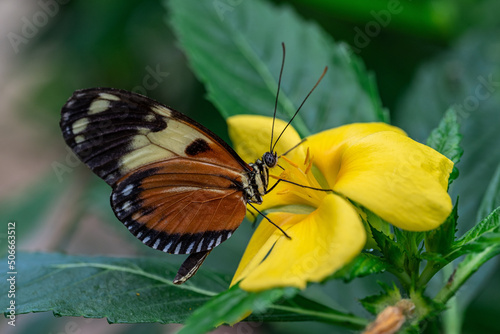 © victor, Obraz premium butterfly covering itself with pollen as it feeds on a yellow flower