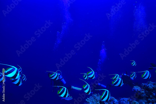 Fototapeta premium Butterfly fish underwater flock diving in the sea background wild under water nature