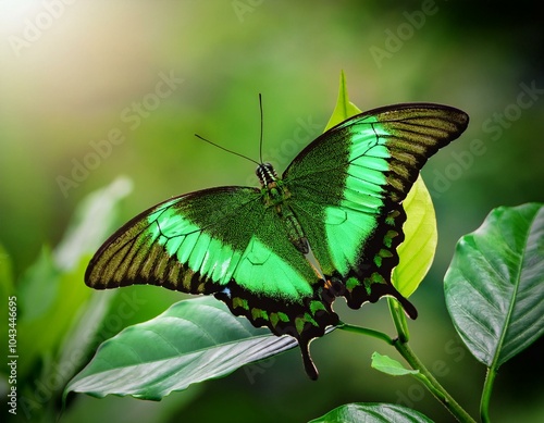 © MdRakibul, Obraz premium Butterfly Green swallowtail butterfly, Papilio palinurus in a rainforest