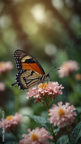 Obraz premium Butterfly in fantasy garden, soft focus and dreamy.