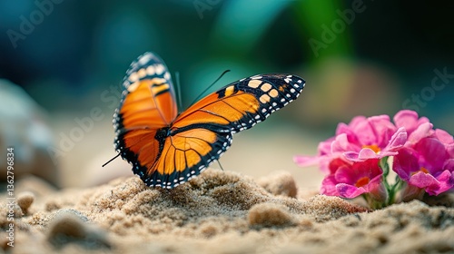 © Naveed Arts, Fototapeta premium Butterfly in Sand Garden for Tranquil Nature Photography