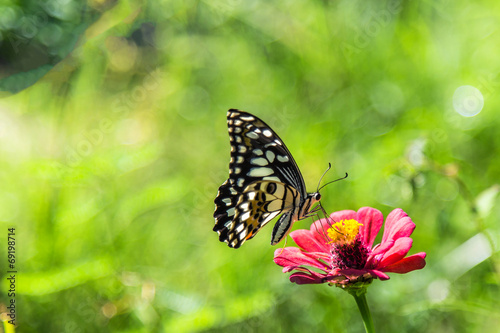 © Soonthorn, Fototapeta premium butterfly is sucking nectar from pink flower