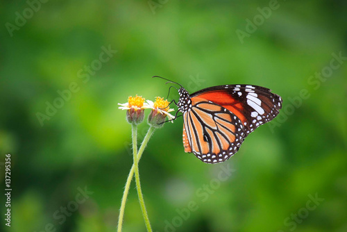 Fototapeta premium butterfly is working for some sweet on flowers