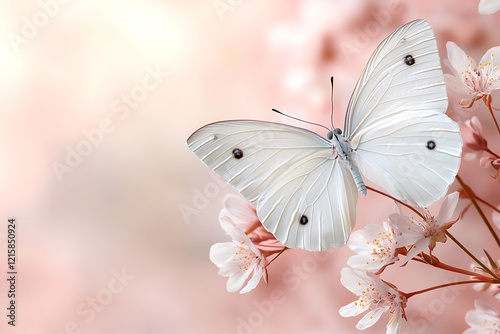Naklejka premium Butterfly landing on floral blooms nature background serene environment close-up view