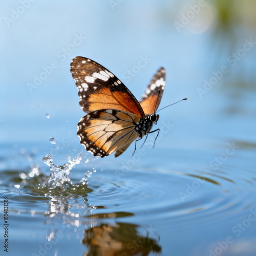 © duyina1990, Obraz premium Butterfly Landing on Water Surface Creating Splashes