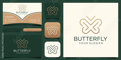 Fototapeta premium Butterfly Logo geometric design abstract vector template Linear style icon.