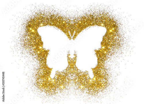 Naklejka premium Butterfly of golden glitter on white background, icon for your design
