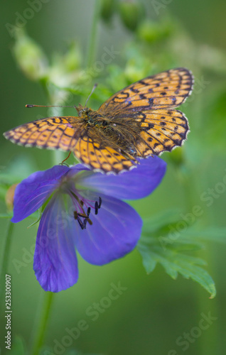 © Анатолий Казаков, Obraz premium Butterfly on a blue flower.