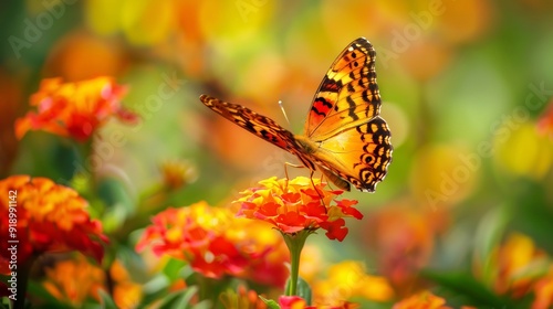 © moon_, Obraz premium Butterfly on a Flower in a Colorful Garden