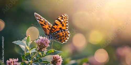 Obraz premium Butterfly on a Flower in the Sunlit Meadow - Photo