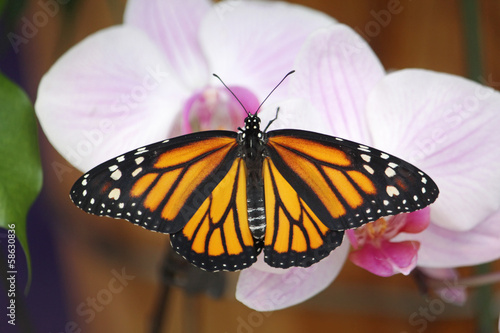 © milka-kotka, Fototapeta premium Butterfly on a flower orchid