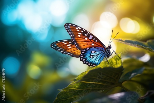 © Dzikrul Husnani, Fototapeta premium butterfly on a flower with blur background with generative ai