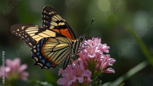 © Antonio, Fototapeta premium Butterfly on a pink flower in a garden in summer.