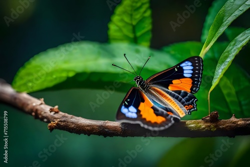 © sarmad, Fototapeta premium Butterfly on branch with the view of leaf.