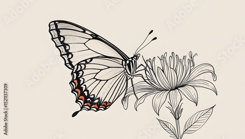 Obraz premium Butterfly on Flower Artistic Illustration for Nature Themed Designs