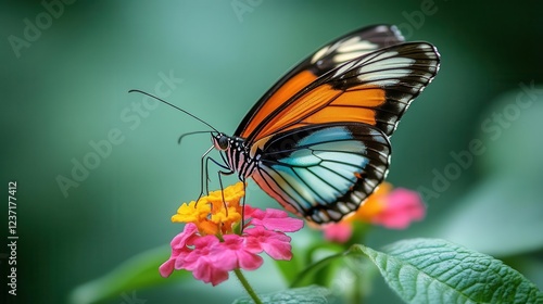 © Nawarit, Fototapeta premium Butterfly on flower, close-up of delicate wings and vibrant flower petals