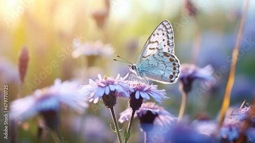 Obraz premium Butterfly on flowers in the meadow. Nature background