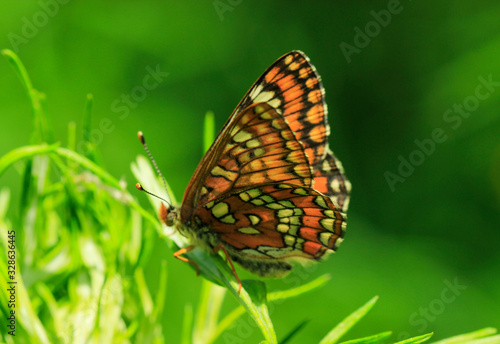 Fototapeta premium butterfly on green grass background