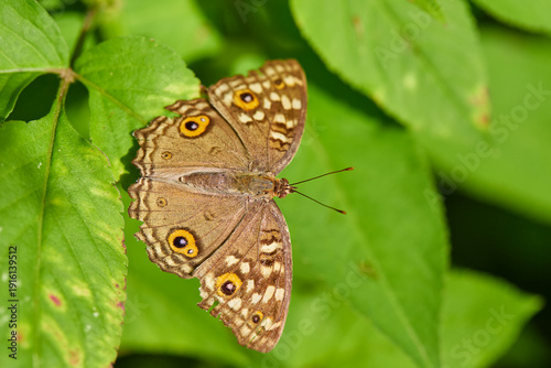 © Anucha, Obraz premium butterfly on green leaf