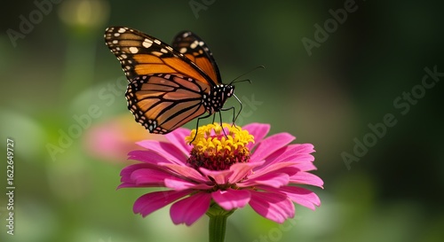 © Zals Images, Fototapeta premium Butterfly on pink flower focus on insect and vibrant colors