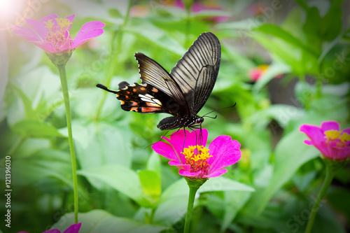 © akepong srichaichana, Fototapeta premium Butterfly on pink zinnia.