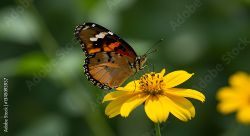 © Muzammil, Obraz premium Butterfly on Yellow Flower Nature Macro Photo