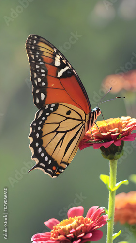 © LooPanda-Pictures, Fototapeta premium Butterfly on Zinnia Blooms