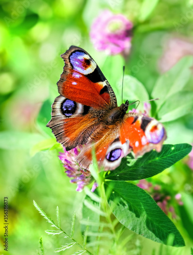 Obraz premium Butterfly peacock's eye in green