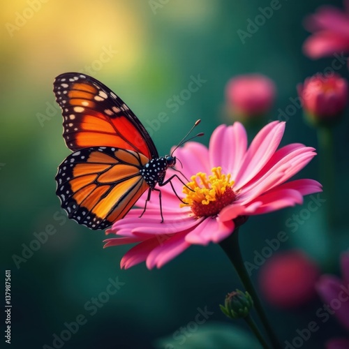 © Panda, Fototapeta premium Butterfly perched on a colorful flower with intricate details , patterns, butterfly