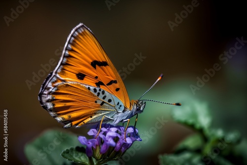 Fototapeta premium butterfly perched on the flower and blurred background, generative ai