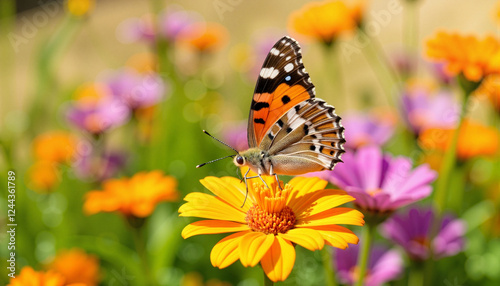 Obraz premium Butterfly resting on vibrant flower in blooming garden