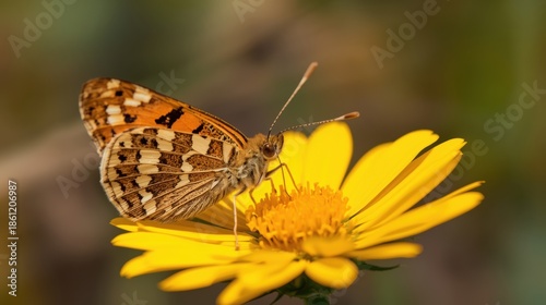 Fototapeta premium Butterfly resting on yellow flower