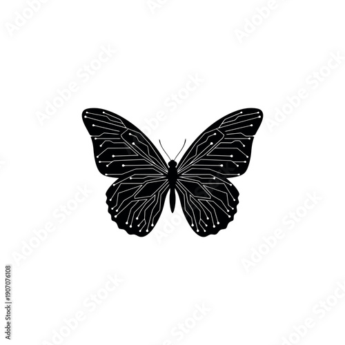 Obraz premium Butterfly Silhouette With Circuit Board Wing Pattern