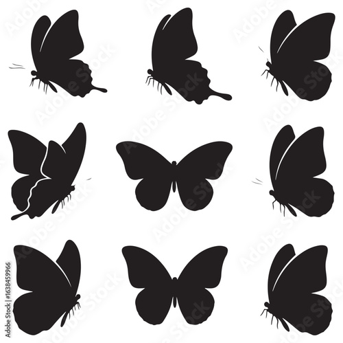 Fototapeta premium Butterfly Silhouettes | Black on White Minimal Vector Set. Ai generator