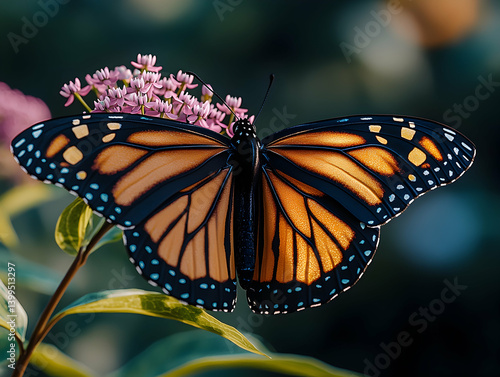 Fototapeta premium Butterfly spreads its vibrant wings on pink flowers a testament to natures...