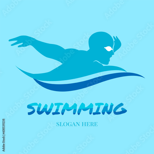 © dhtgstockphoto, Naklejka premium butterfly stroke swimming crawl logo design