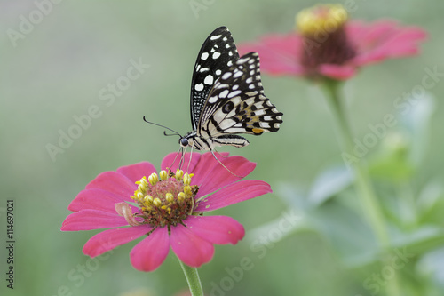 © supanee2550, Fototapeta premium Butterfly sucking nectar from pink flowers .