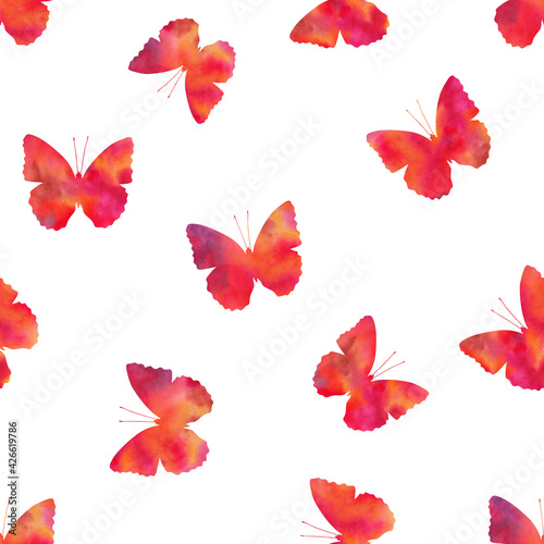 Fototapeta premium butterfly watercolor seamless pattern, watercolor divorces, butterfly silhouette