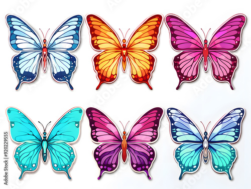 Obraz premium Butterfly Wings kawaii stickers with vibrant color