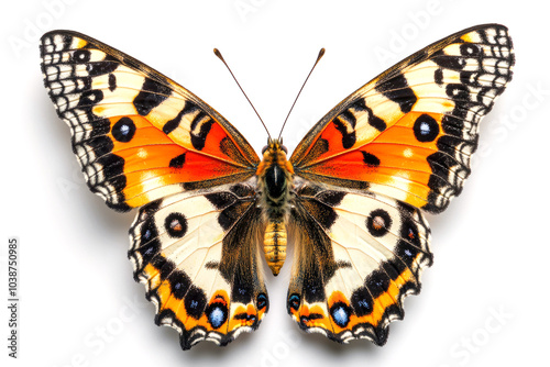 © Michael, Fototapeta premium Butterfly with open wings showing beautiful pattern isolated on white